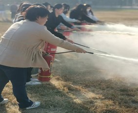 师生进行灭火器操作