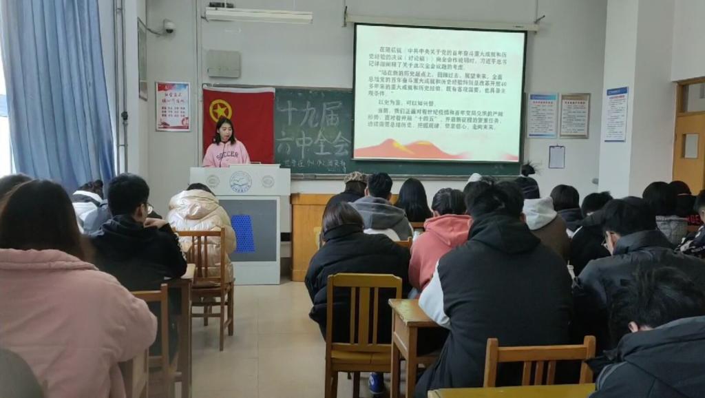 团日活动在激昂的团歌中拉开了帷幕。团支部书记向同学们介绍了本次团日活动开展的意义,并结合视频展示了十九届六中全会的会议重点,总结党和国家事业取得的13方面历史性成就、党百年奋斗的5大意义,由此总结出的“10个坚持”和实现第二个百年奋斗目标的“4个必须”。活动中,同学们积极交流和分享自己的心得体会。