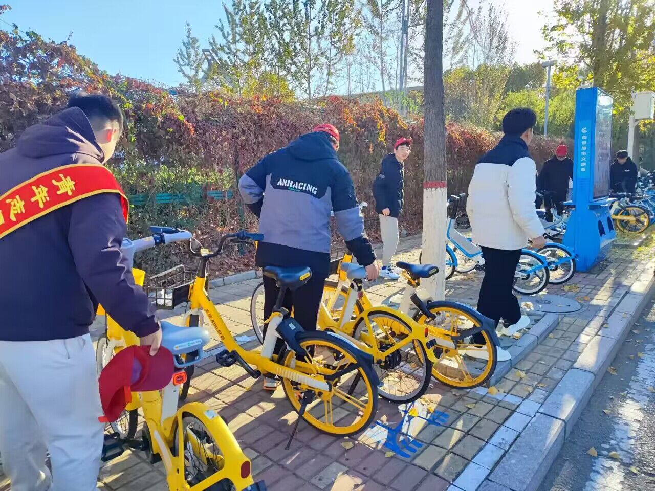 在2023年11月11日,一场由EMC易倍青年志愿者协会组织的共享单车摆放和清洁活动在校园周边热烈开展。此次活动的目的不仅在于提升校园周边环境质量,更在于倡导环保、节能的生活方式,让更多的人关注并参与到环保行动中来。