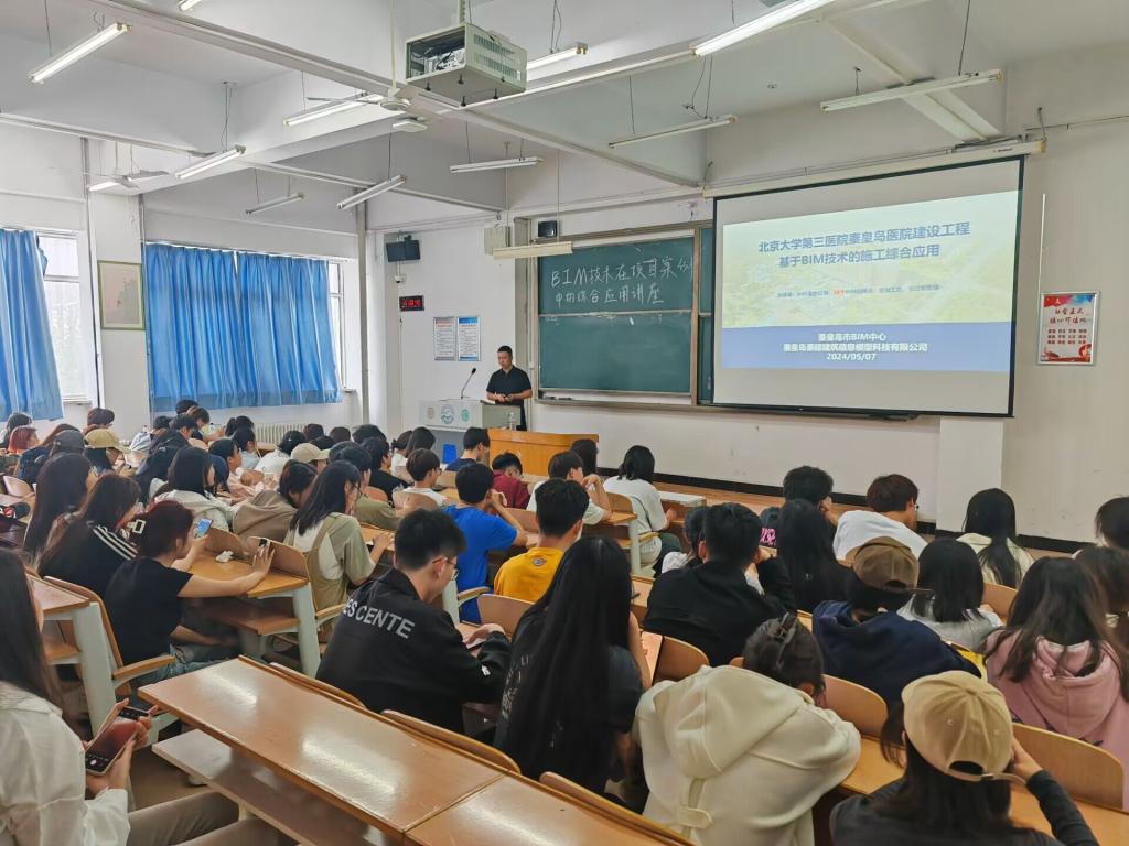 此次讲座的主要内容有:一、BIM技术基本概念如定义、基本原理、发展历程;二、BIM技术可应用的各种阶段及此技术的优势:数据建模、信息共享和协同设计;三、着重以秦皇岛第三医院建设过程中BIM应用为例,结合秦皇岛独特的地理位置介绍了BIM技术在当地的发展和应用情况。李瑞峰主任在讲座中通过图文并茂的PPT演示文稿让现场的同学们对BIM技术的应用有了更深入、更全面的认识。在一片片热烈的掌声中,一场别开生面的讲座最终落下帷幕,同学们纷纷表示意犹未尽,在展望自身能掌握这门新技术的同时也对未来建筑走向有了新的认识。